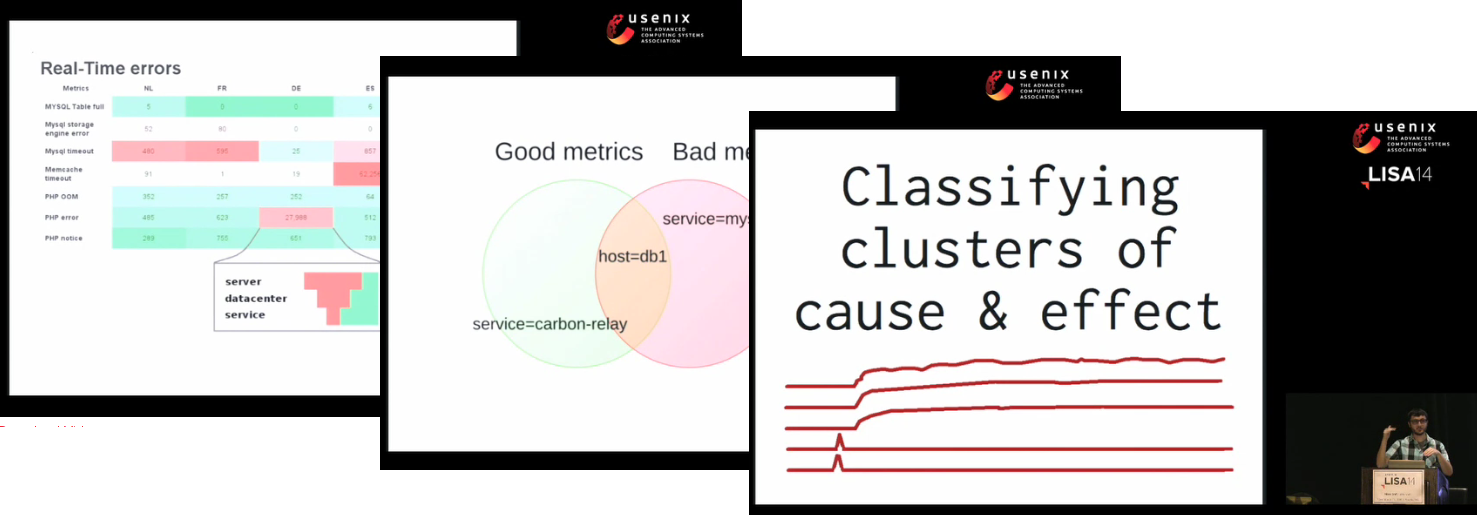 • Many scientists are working on algorithms that find cause and effect when different series exhibit anomalies, so they can send more useful alerts. But again here, a simple model of the infrastructure gives you service dependencies in a much easier way.